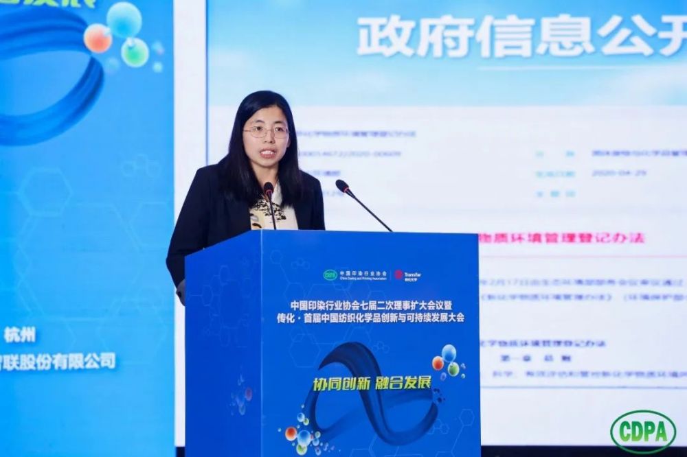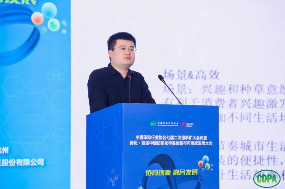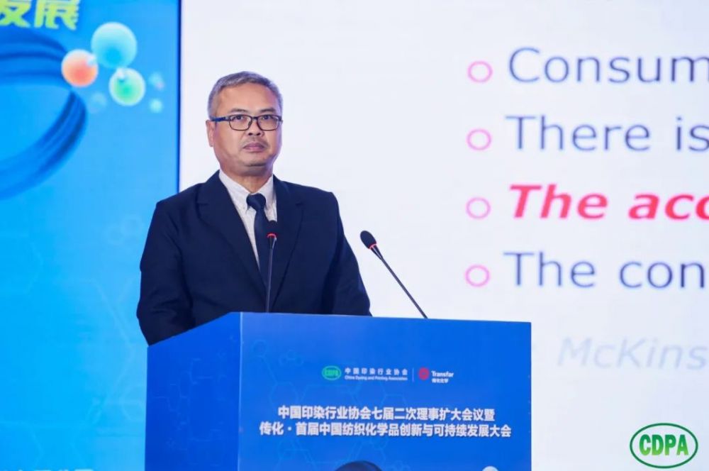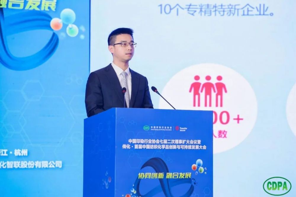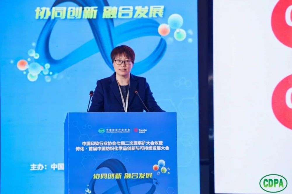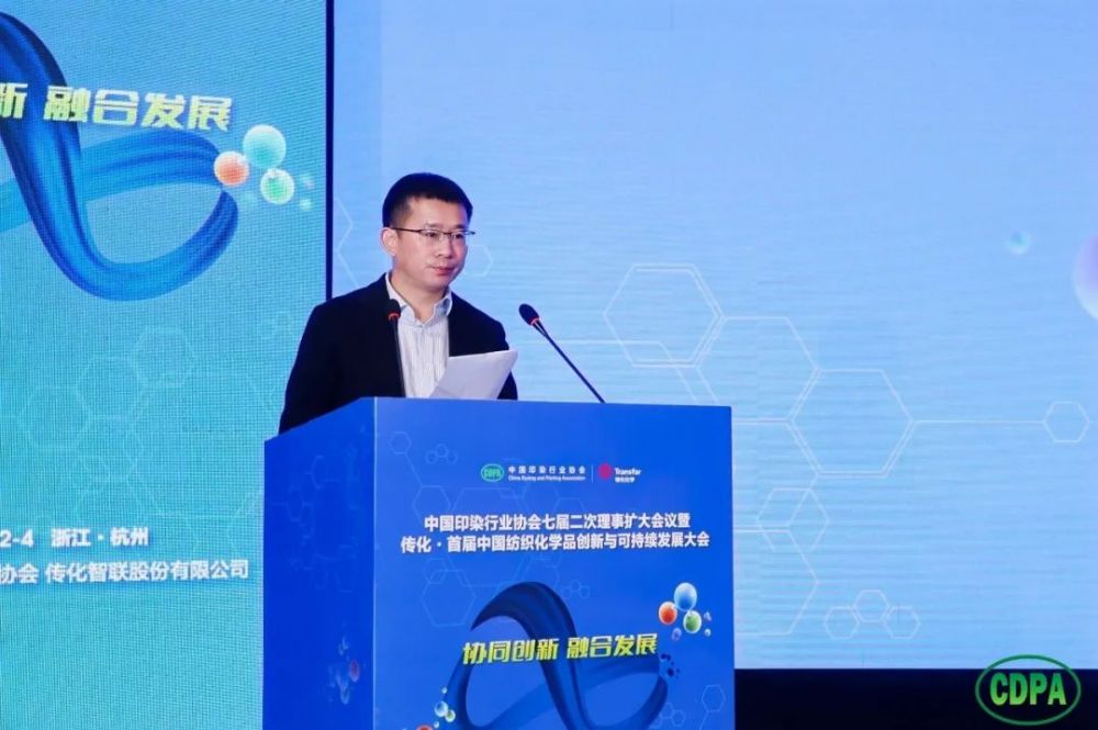 傳化集團副總裁徐迅作題為《傳化紡織化學綠色可持續發展報告》的報告。傳化集團創業于1986年,是一家多元化、多品牌、全球化的產業集團,布局傳化化學、新安化工、傳化物流、傳化科技城、傳化農業等業務。傳化紡化作為傳化集團最早的業務板塊之一,堅持為客戶提供領先的、高價值的、一站式的系統解決方案,積極攜手產業鏈上下游共同推進紡織印染行業的轉型升級,以實際行動踐行綠色發展承諾。