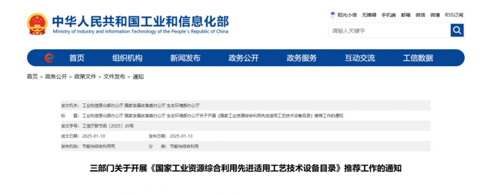 工業(yè)和信息化部辦公廳 國家發(fā)展改革委辦公廳 生態(tài)環(huán)境部辦公廳關(guān)于開展《國家工業(yè)資源綜合利用先進(jìn)適用工藝技術(shù)設(shè)備目錄》推薦工作的通知