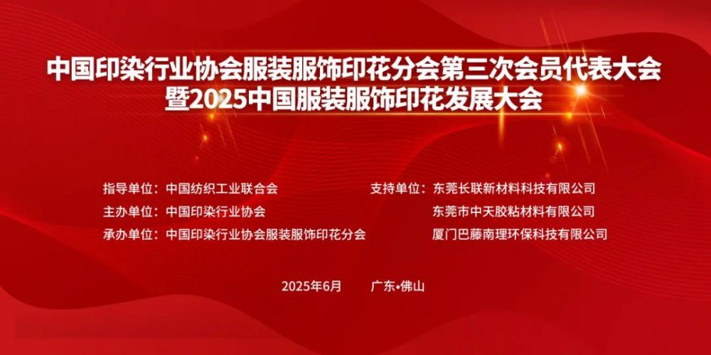中國印染行業協會服裝服飾印花分會自2016年9月成立以來,扎實推進各項工作任務,致力于為服裝服飾印花行業搭建細分領域的交流合作平臺,有關工作取得了積極成效。根據《中國印染行業協會章程》及《中國印染行業協會分支機構、代表機構管理辦法》規定,第二屆理事會任期屆滿,茲定于2025年6月10日在廣東省佛山市召開“中國印染行業協會服裝服飾印花分會第三次會員代表大會”,同期召開“2025中國服裝服飾印花發展大會”。本次會議將以“精印匠心 智啟新篇”為主題,邀請有關領導、行業專家、優秀企業家就AI技術在行業內創新應用、印花材料及加工工藝創新發展等議題開展深入研討與交流。有關事項通知如下: