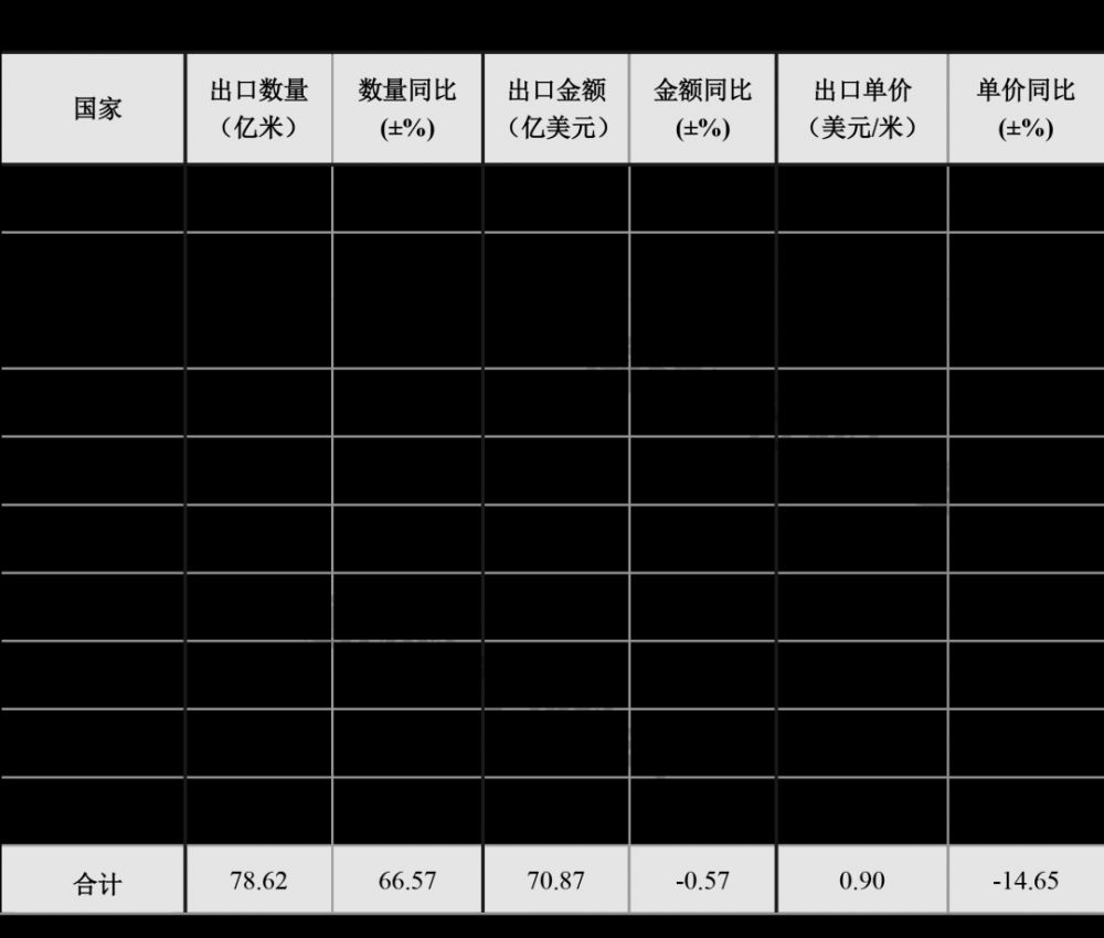 對東盟出口放緩,我國印染行業加快拓展其他出口市場。上半年,我國印染八大類產品對尼日利亞、巴西、印度、巴基斯坦等國家出口數量實現較快增長,其中對尼日利亞和巴基斯坦出口數量同比增幅分別達到66.57%和47.18%,對印度出口數量增速接近20%。從出口平均單價來看,對前十國家出口單價平均下降14.65%,其中對尼日利亞、越南和巴西出口單價降幅均高于行業整體水平。