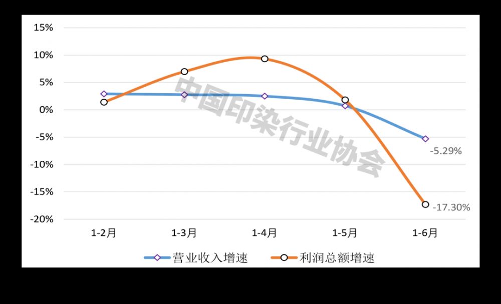 上半年,規模以上印染企業營業收入同比減少5.29%,增速較一季度放緩8.05個百分點;利潤總額同比大幅減少17.30%,增速較一季度放緩24.28個百分點;成本費用利潤率3.78%,同比降低0.57個百分點;營業收入利潤率3.55%,同比降低0.51個百分點。1846家規模以上印染企業虧損戶數為730戶,虧損面39.54%,同比擴大2.91個百分點;虧損企業虧損總額19.23億元,同比減少7.39%。二季度,印染行業主要經濟效益指標增速均由正轉負,尤其是6月份,營業收入和利潤總額增速加速下滑,印染企業經營壓力明顯加大。