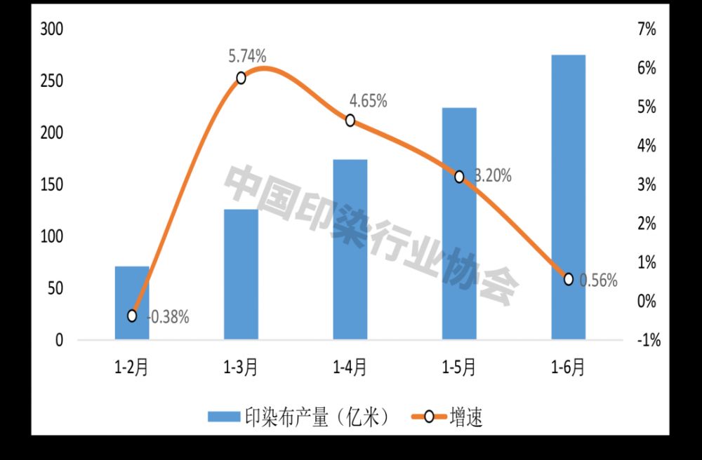 圖1 2025上半年我國印染行業規模以上企業印染布產量及增速
